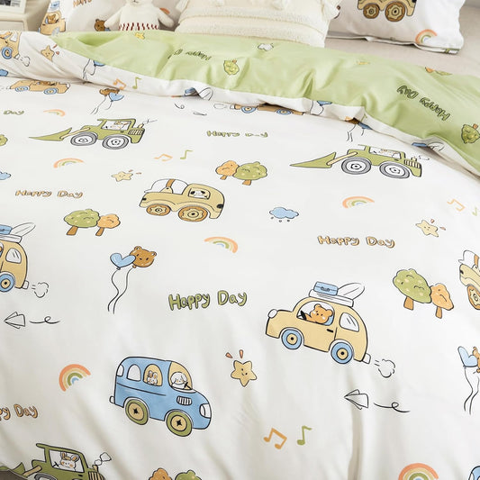 Juego de funda de duvet de carritos reversible verde 100% algodón