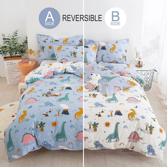 Juego de funda de duvet dinosaurios reversible azul 100% algodón