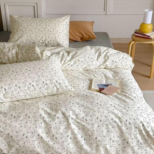 Funda de duvet con patron de conejos impreso en blanco, 100% algodón.