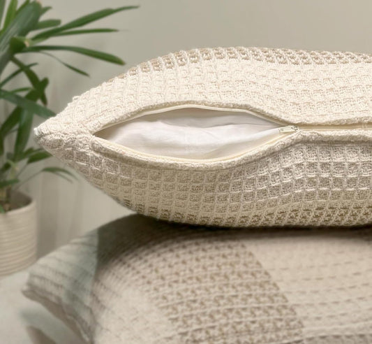 Funda de Cojín con Trenza de Cable y Tejido de Diamante