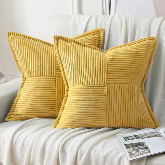 Set de 2 Fundas de Cojin con Franjas de Pana y Borde