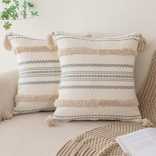Set de 4 fundas para almohada decorativa con tejido corduroy con diseño de rayas boho.