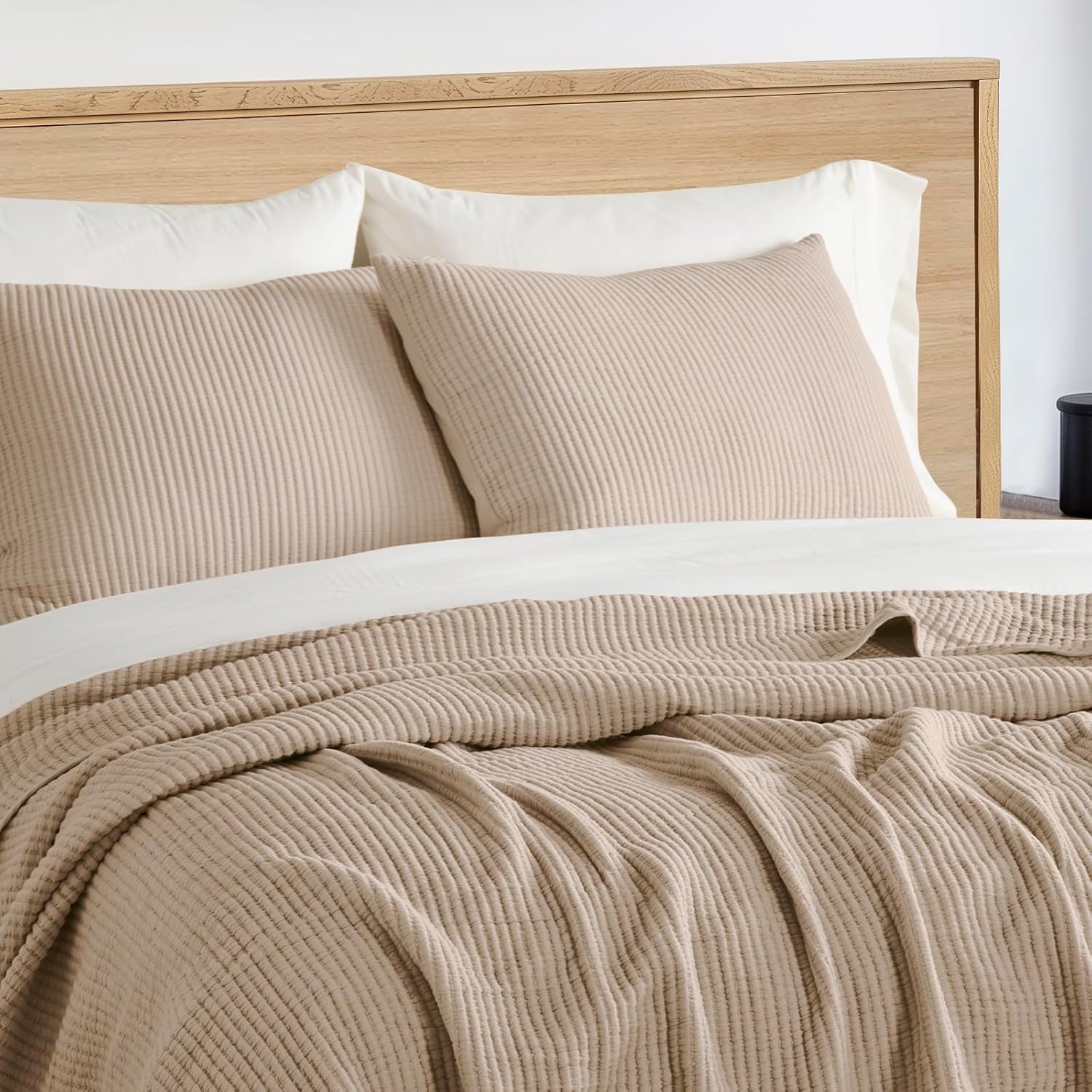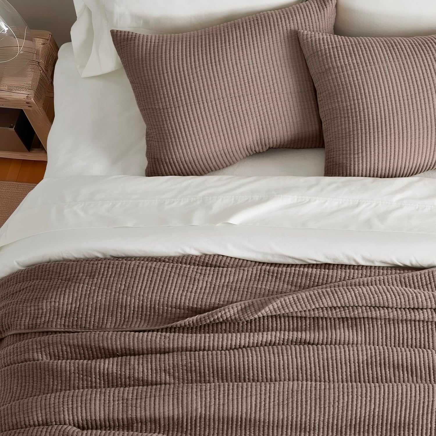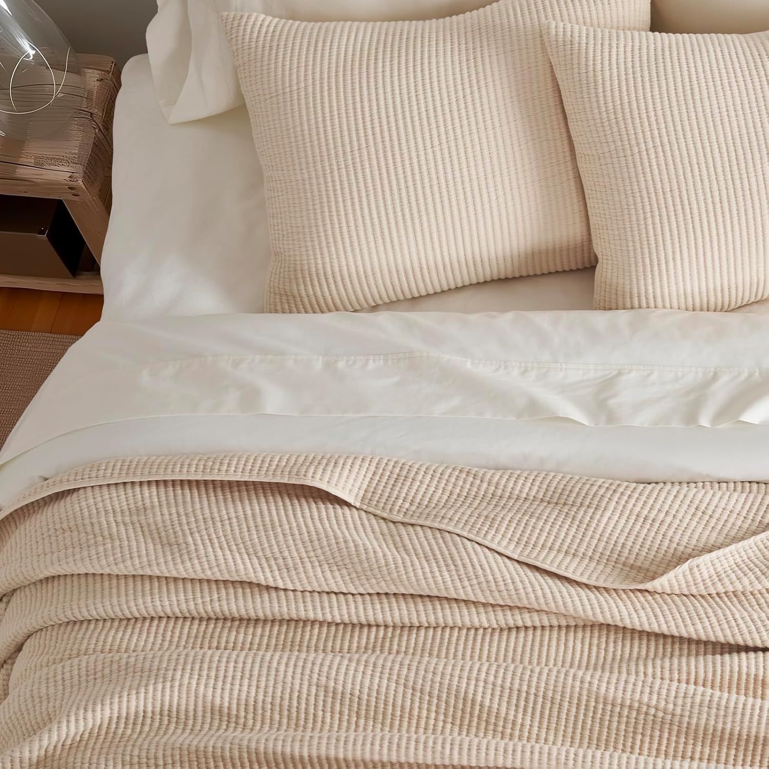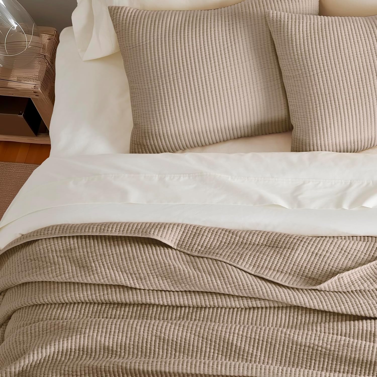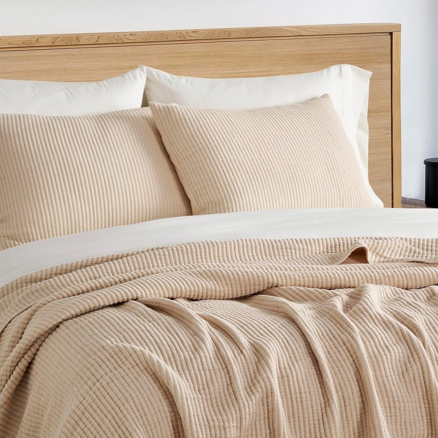 Dale un toque sofisticado a tu dormitorio con nuestra exquisita colcha de algodón, que destaca por su delicado relieve acanalado. Esta textura única combina elegancia y refinamiento relajado, aportando un toque contemporáneo y atemporal que se adapta perfectamente a cualquier tipo de decoración.