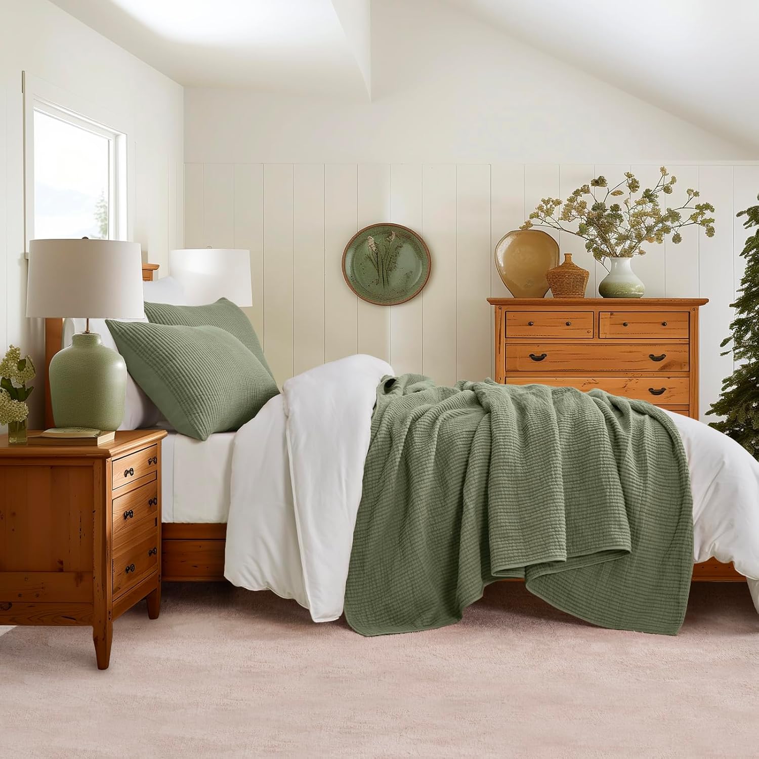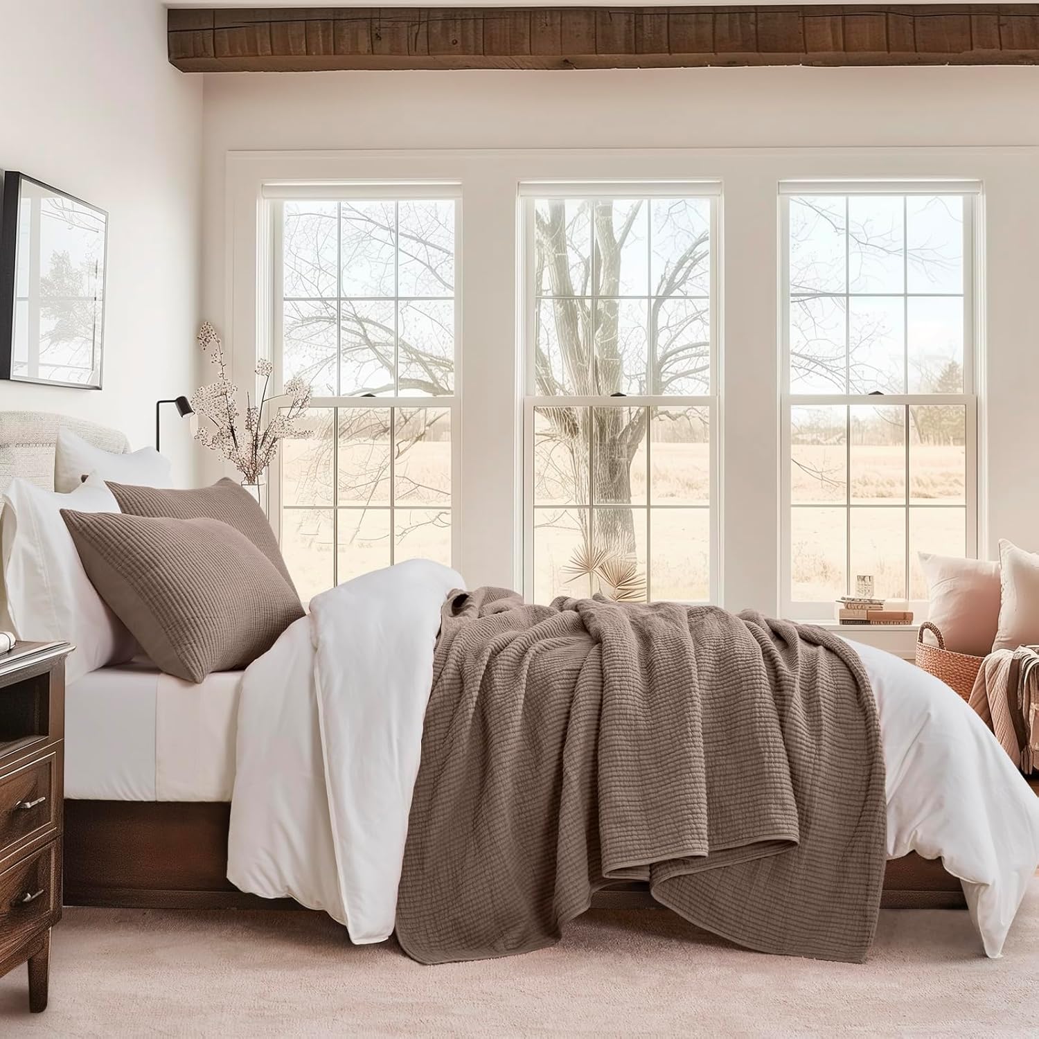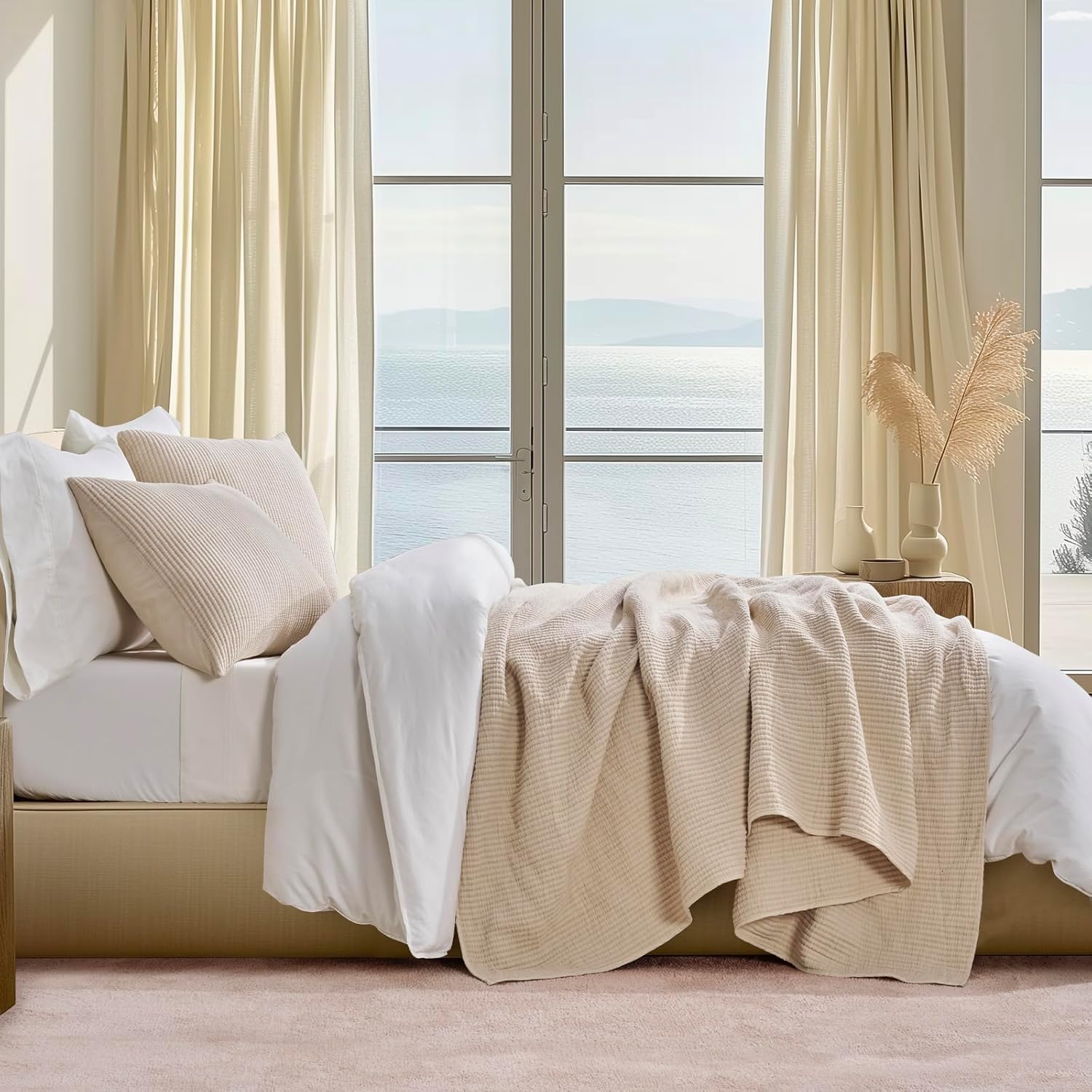 Ambos tamaños están diseñados con medidas sobredimensionadas, permitiendo crear un aspecto elegante con capas adicionales. Puedes usarla como un cubrecama ligero para el verano, una manta extra en invierno, o como un elemento decorativo que realza la estética de tu dormitorio.