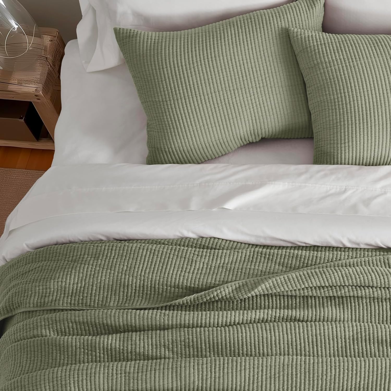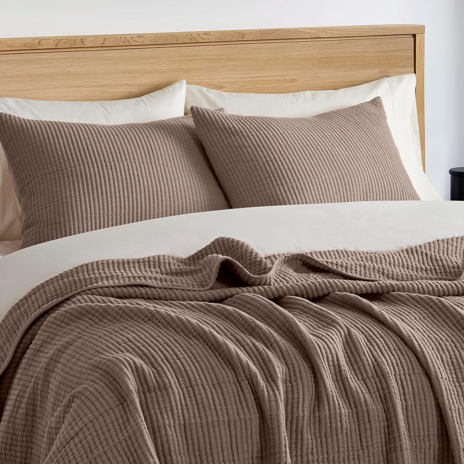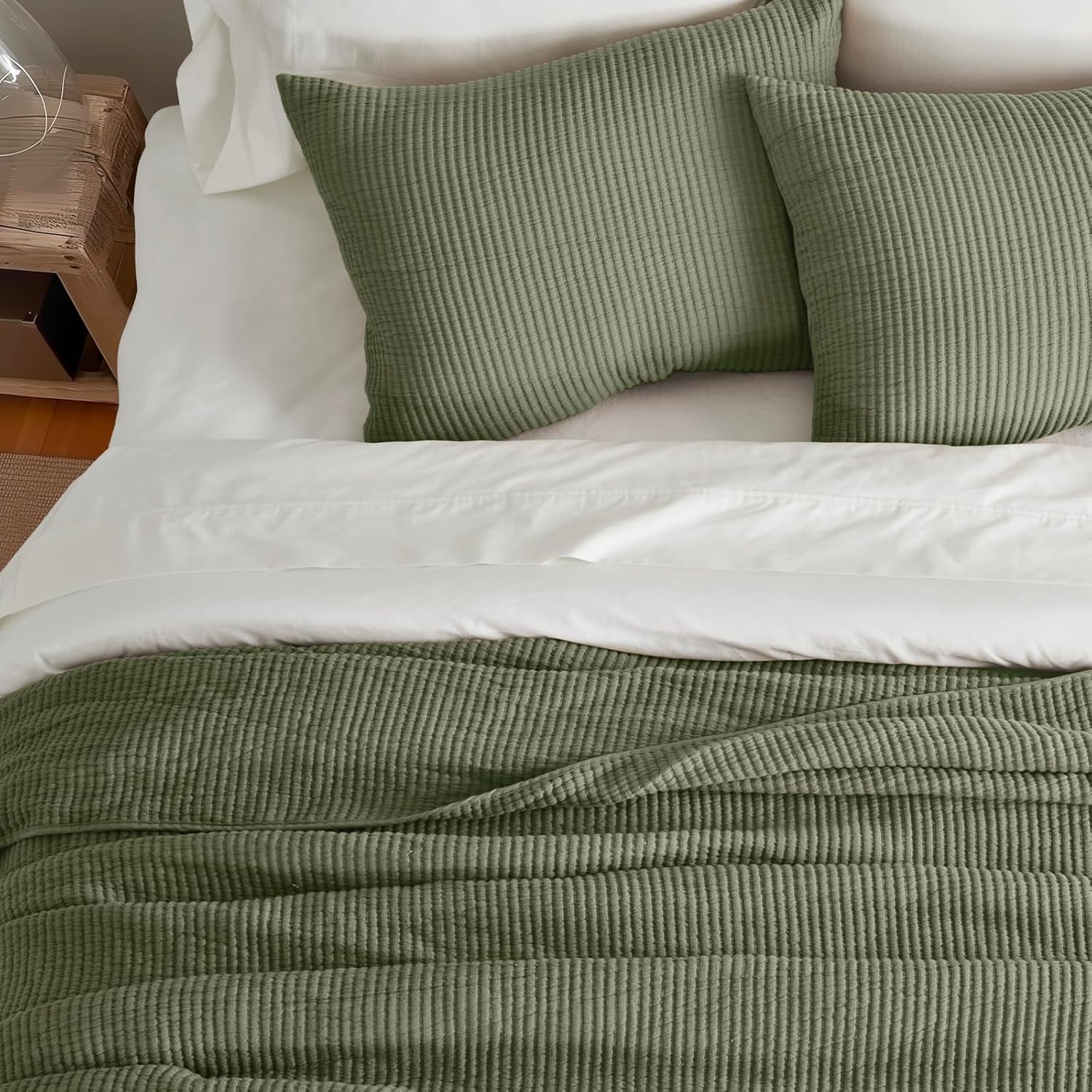 - King: Incluye una colcha de algodón (274 x 249 cm) y dos fundas de almohada a juego (51 x 91 cm).